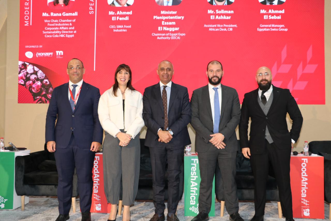 وشارك في الجلسة كل من أحمد الفندي، الرئيس التنفيذي لشركة سيما فوود للصناعات الغذائية، والوزير المفوض التجاري عصام النجار، رئيس الهيئة المصرية العامة للمعارض والمؤتمرات، وسليمان الأشقر، نائب الرئيس المساعد لإدارة أفريقيا بالبنك التجاري الدولي CIB، فيما أدارت الجلسة رنا جمالي، نائب رئيس غرفة الصناعات الغذائية ومديرة الشؤون المؤسسية والاستدامة في كوكاكولا مصر.